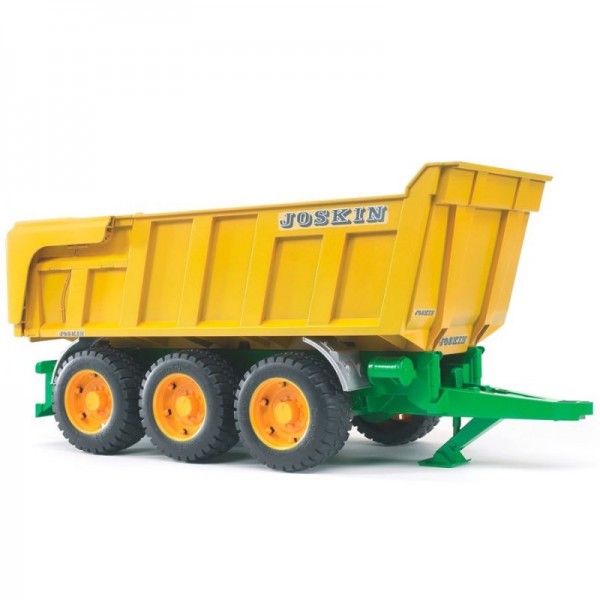 Priestranný sklápací príves Joskin je výborným doplnkom k modelom značky Bruder. Kompatibilný je so všetkými traktormi z Profi série, disponuje sklápacou opornou nohou a polohovateľnou korbou s otváracím zadným čelom a vikierom na obilie. Komfortnú jazdu v akomkoľvek teréne zaručujú tri nápravy a odolné pneumatiky. Vyrobený v mierke 1:16. Vhodný pre deti od 4 rokov.