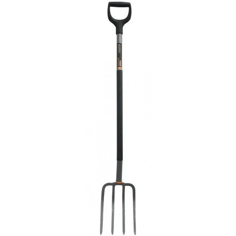 Rýľovacie vidly Ergonomic od Fiskars sú ideálne na kyprenie a obracanie zhutnenej zeminy. Svoje využitie nájdu aj k prevzdušňovaniu trávnika a odhrabávanie kameňov a buriny. Vidly majú ergonomicky tvarovanú násadu a držadlo k zníženiu námahy chrbta, rúk a zápästí. Plastom potiahnutá násada poskytuje maximálny komfort a istotu úchopu. Zaručená vysoká pevnosť vďaka bórovej oceli.