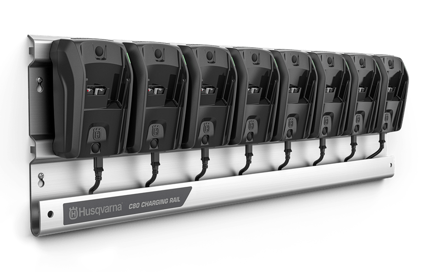 Husqvarna 40-C80 nabíjacia stanica ponúka pohodlný spôsob, ako nabiť cez noc až 8 akumulátorov Husqvarna BLiX 36V.