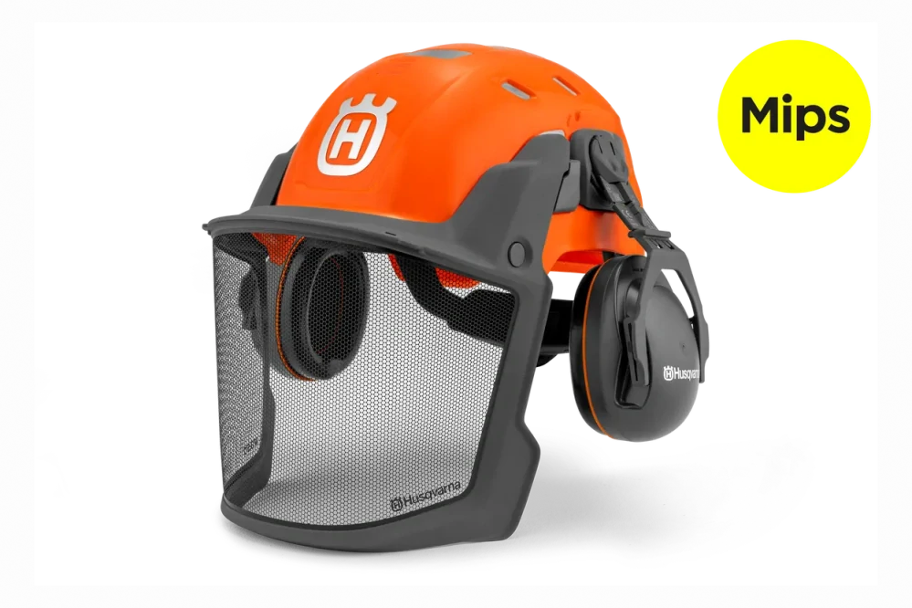 Prilba Husqvarna Technical vybavená bezpečnostným systémom Mips® pre lesnícke prilby. Systém Mips® je navrhnutý tak, aby poskytoval pohyb vo vnútri prilby a presmeroval rotačný pohyb od hlavy pri nárazoch pod určitým uhlom.