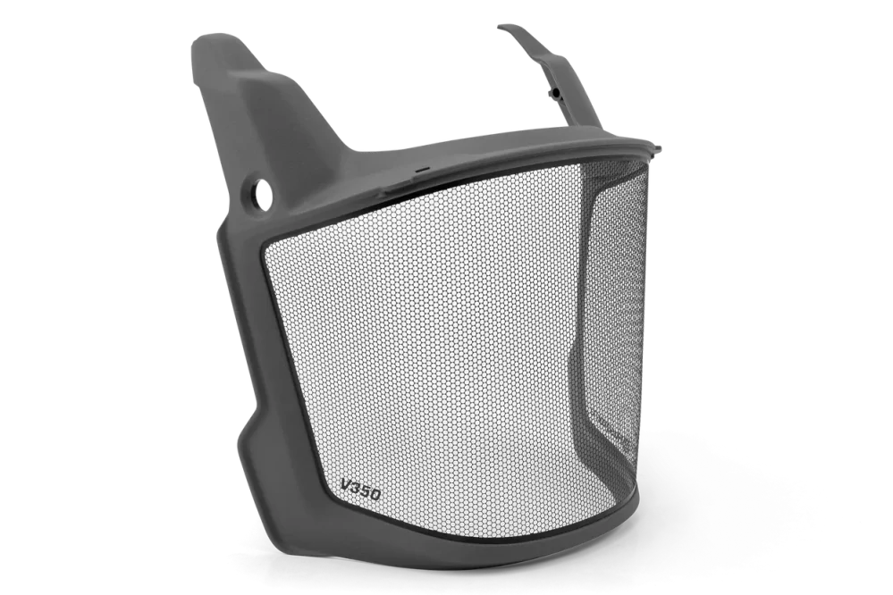 Ochranná sieťka na prilbu Husqvarna Technical. Jej jedinečný dizajn zaisťuje ničím nerušený výhľad, či už je zdvihnutá alebo spustená, a poskytuje jasný výhľad do korún stromov.