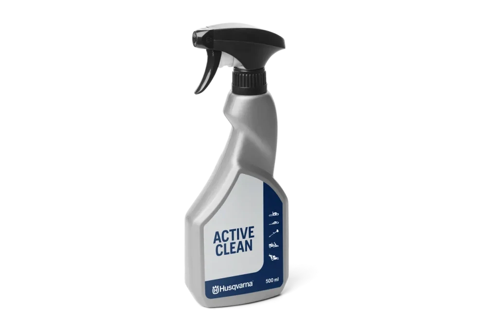 Univerzálny čistiaci sprej, účinný na pílové reťaze, záhradné stroje, vzduchové filtre a špinavé topánky. Ergonomicky navrhnutá fľaša s vysoko kvalitným sprejom uľahčuje aplikáciu. Súčasťou výrobku sú úzka prúdová tryska na čistenie menších predmetov, ako sú reťazové píly a plotostrihy, a široká sprchová tryska pre čistenie väčších predmetov, ako sú žacie ústrojenstvo, ridery a záhradné traktory. Husqvarna Active Clean spray obsahuje špeciálne vyvinutý detergent, ktorý je bez fosfátov a biologicky rozložiteľný. Objem 0,5 litra.